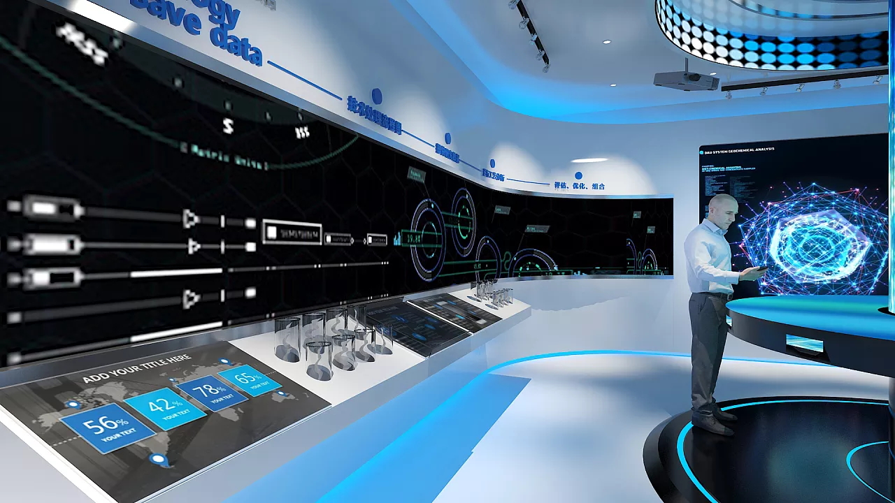 昆山軟件園產(chǎn)業(yè)展示館的主題是“尊重的可能”,希望通過這一主題來傳遞軟件園對于產(chǎn)業(yè)發(fā)展美好未來的祈愿。展廳運用燈光渲染主題氣氛,分為:發(fā)展歷程、領(lǐng)導關(guān)懷、產(chǎn)業(yè)集群、核心產(chǎn)品應用、未來展望等篇章。運用圖文展板和多媒體互動“動靜結(jié)合”回首過去及展望未來的恢弘篇章,使參觀者流連忘返,深度思考。