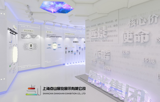 在展廳設(shè)計(jì)中,盡最大可能取消弧度墻體,合理增加展示面積;提煉分子式及行業(yè)屬性元素,深度表現(xiàn)企業(yè)文化厚重感、社會(huì)責(zé)任(綠色發(fā)展)、企業(yè)的旺盛生命力、未來愿景規(guī)劃等等