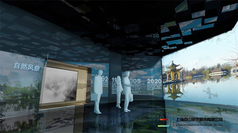 展廳在視覺傳達(dá)上提煉南潯水鄉(xiāng)“水晶晶”的文化特征元素貫穿始終,