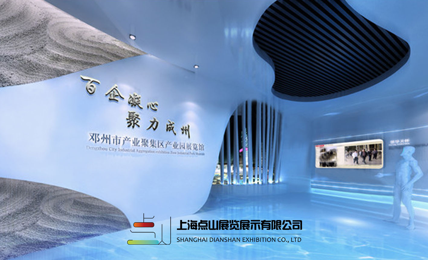 點(diǎn)山展示將規(guī)劃館分為:序廳、明星企業(yè)、取得的成績、年產(chǎn)值、園區(qū)背景、流程管理、產(chǎn)業(yè)規(guī)劃七大展區(qū)。