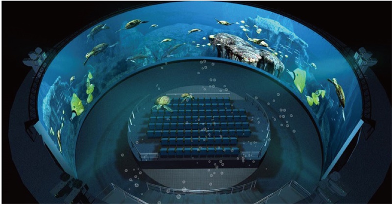 球幕影院觀眾廳為圓頂式結(jié)構(gòu),屏幕呈半球形,觀眾被包圍其中,視屏幕如同蒼穹。由于屏幕影像大而清晰,自觀眾面前延至身后,且伴有環(huán)繞立體聲,使觀眾如置身其間,臨場效果十分強(qiáng)烈。立體動感球幕影院作為比球幕影院、巨幕影院、環(huán)幕影院以更具震撼力的表現(xiàn)形式,是目前公認(rèn)的能體現(xiàn)“身臨其境”感覺的最佳播放載體。