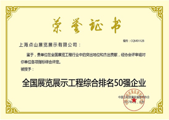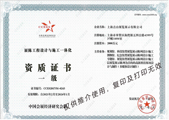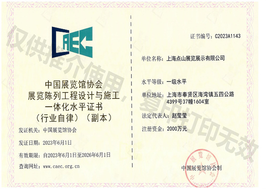 中國展覽館協(xié)會展覽陳列工程設(shè)計與施工一體化一級資質(zhì)
