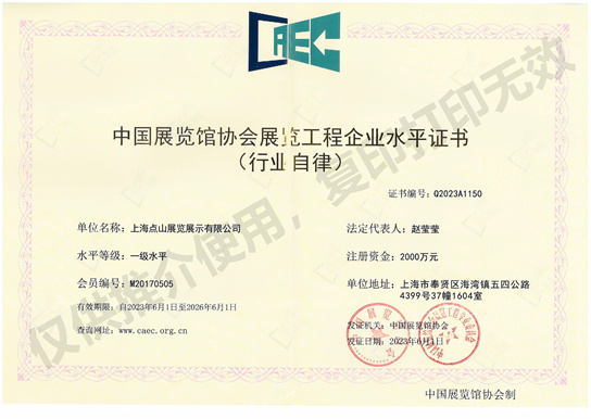 中國展覽館協(xié)會展覽工程企業(yè)一級資質(zhì)